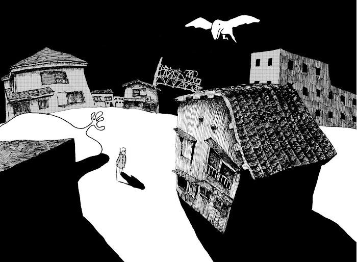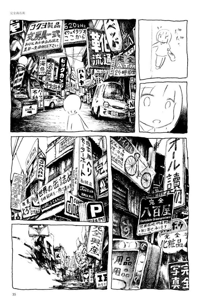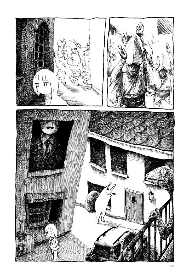 Ashizuri Aquarium and Invitation from a Crab are collections of short, bizarre stories. They both share a similar theme which is why I'm lumping them together, but, as of writing this I'm 4 chapters away from finishing Invitation from a Crab. These quickly became one of my favourite manga I've ever read. In their surreality and visual humor they kind of remind me of Short Cuts. Both Ashizuri Aquarium and Invitation from a Crab share core themes like: wandering around and getting lost in places you can't comprehend, dream like situations, nonsensical conclusions, extremely simplistically drawn characters compared to the environment, big focus on fish and sea animals. Somehow all of this together comes to form something that is extremely appealing to me and my tastes. Maybe it's because my dreams could fit right into a chapter of this manga and nobody would notice, but I really love it. Tell me these images don't invoke a familiar feeling in you: