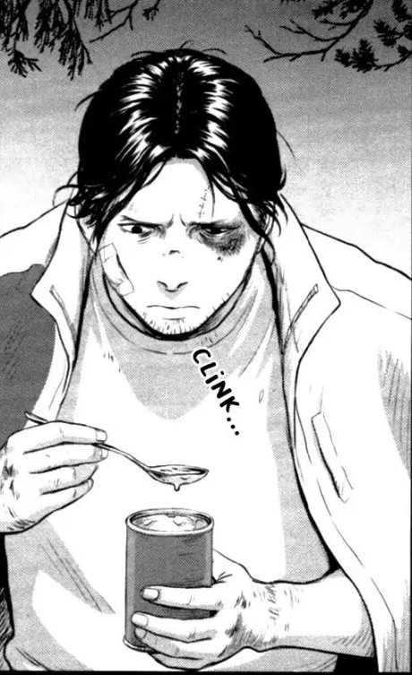 Now let's move on to this tone issue I keep blabbering about. Both of these manga have something in common - they come with the "disturbing, scary, psychological horror" label as described by the fans. Yet for some reason, both manga have moments where the most disturbing moments are coupled with this weird lightheartedness that completely throws me off. In the first one there's an actual, pretty abusive gang rape scene, but in the background there's a character going :) drawn in a funny-haha way?